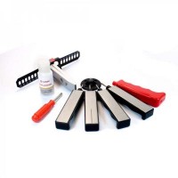 В комплект Ganzo G501 входит 4 алмазных точильных камня различной гритности. С их помощью можно провести базовую выправку режущей кромки, заточить, а также отшлифовать лезвие на финальной стадии процесса. Для достижения максимального эффекта рекомендуется перед началом затачивания добавить на камень немного масла для заточки, которое также входит в комплект поставки.Все детали Ganzo G501 размещены в компактном пластиковом контейнере. Так что точильный станок удобно хранить, а при необходимости – легко взять с собою.